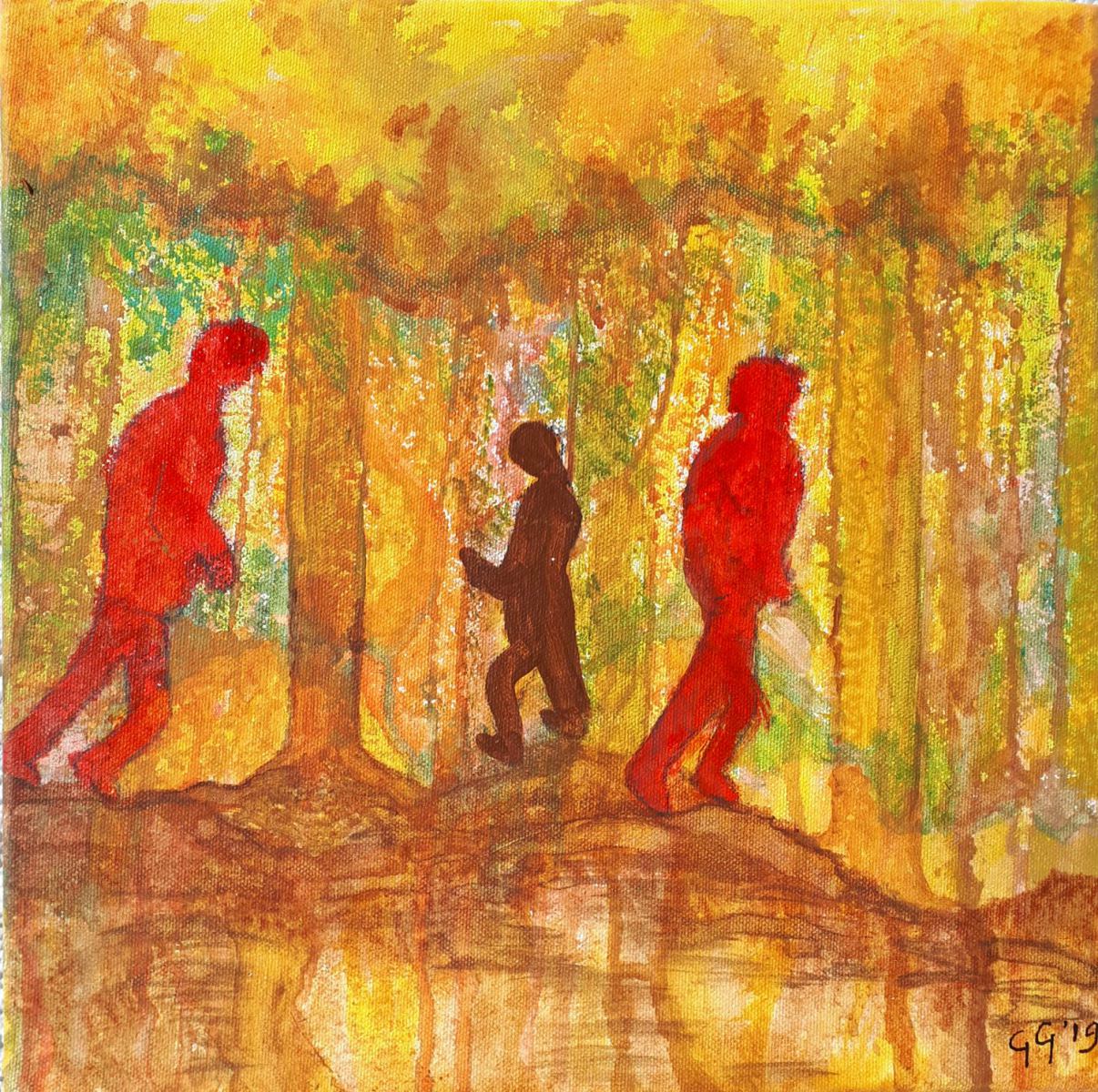 Bos, acryl op katoen, 30 x 30 cm