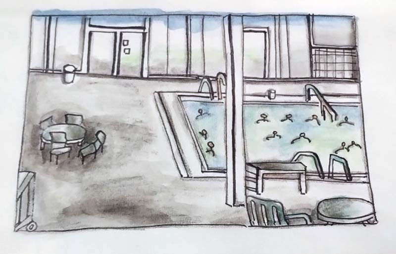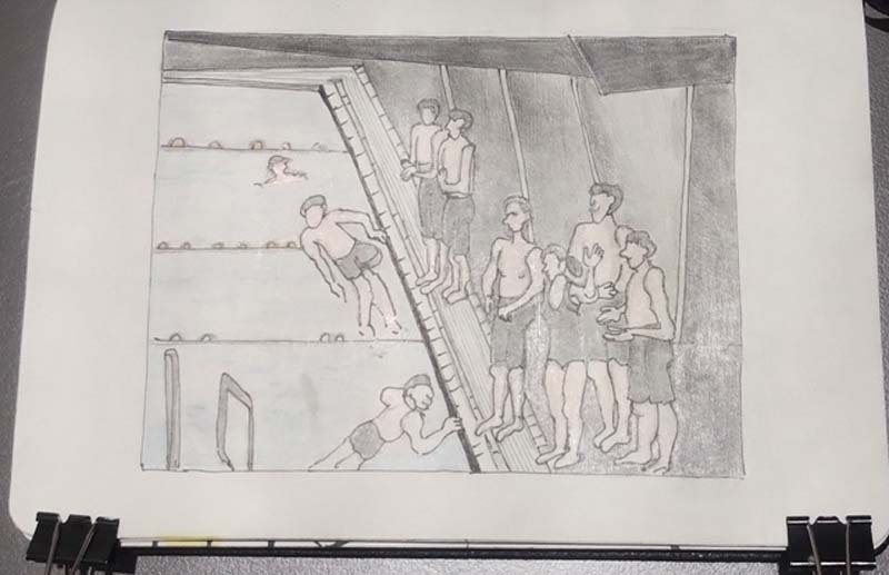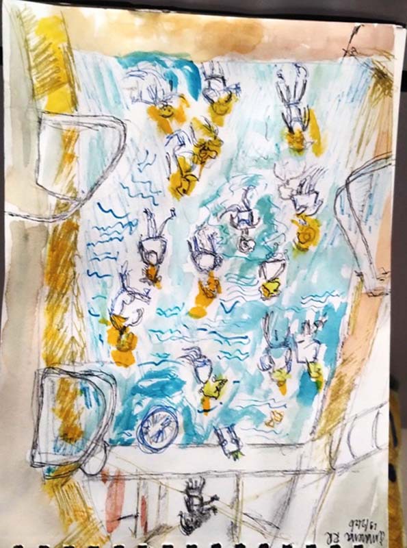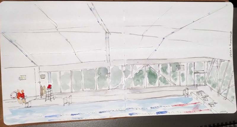 5 februari 2026; de sketchers waren in het Amarena zwembad